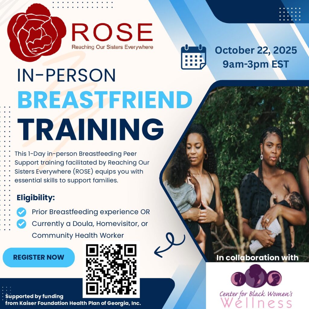 Breastfeeding is easier said than done! Sore nipples, engorgement, fussy baby... but you're not alone! This 1-Day in-person Breastfeeding Peer Support training facilitated by Reaching OurSisters Everywhere (ROSE) equips you with essential skills to support families. Breastfeeding moms, caregivers, doulas, and other birth workers are welcome. Click here to register.