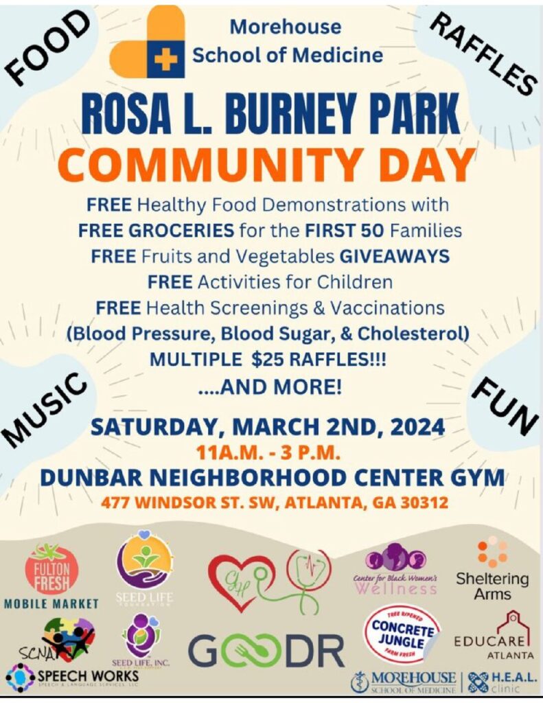 Join us for Community Day at Rosa L. Burney Park! There will be lots of giveaways and activities for all ages. Get connected with community resources to help you live healthier and happier.   Click here for Directions to Rosa L. Burney Park.